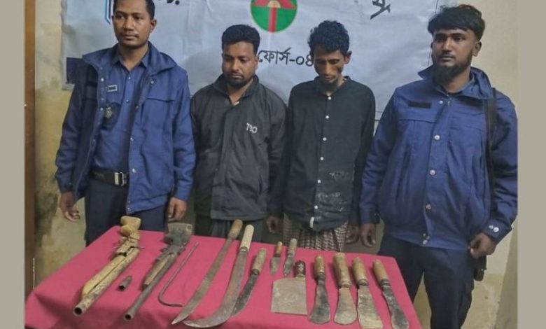 যৌথবাহিনী সূত্র জানায়, গোপন সংবাদের ভিত্তিতে রাতের অভিযানে প্রথমে আবু বক্কর ও রুবেলকে আটক করা হয়। পরবর্তীতে তাদের নিজ নিজ বাড়িতে তল্লাশি চালিয়ে ২টি দেশীয় একনলা বন্দুক, ১টি খালি কার্টিজ, ১টি চাপাতি, ৫টি ছুরি, ৪টি দা এবং ১টি লোহার রড উদ্ধার করা হয়।