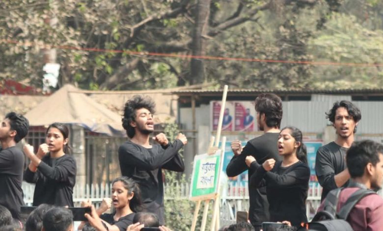 একুশের চেতনায় রাজু ভাস্কর্যে পথনাটক ‘ভাষার ক্ষুধা’ মঞ্চস্থ