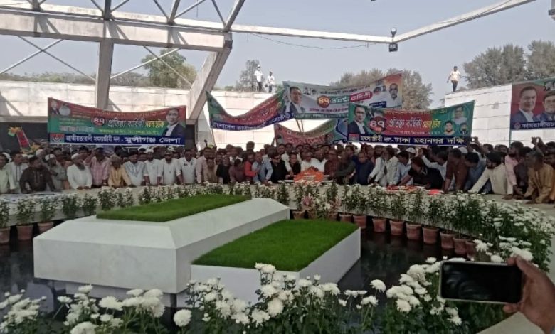 শনিবার (২৮ ফেব্রুয়ারি) দুপুরে মিছিলসহকারে সেখানে গিয়ে তারা পুষ্পস্তবক অর্পণ করেন। পরে মরহুমদের আত্মার মাগফিরাত কামনা করে ফাতেহা পাঠ ও দোয়া করা হয়।