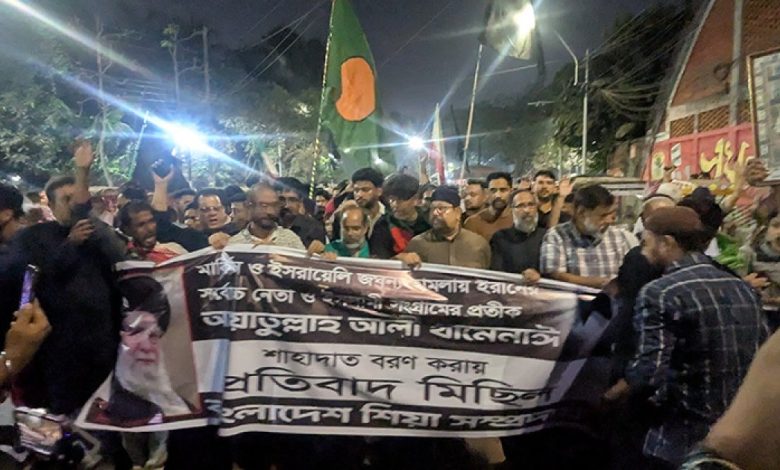 খামেনির মৃত্যুতে ঢাকায় শিয়া সম্প্রদায়ের বিক্ষোভ ও শোক মিছিল