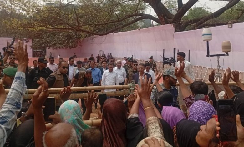 মঞ্চে উঠার আগে অপেক্ষমাণ নারীদের সঙ্গে দেখা করলেন তারেক রহমান
